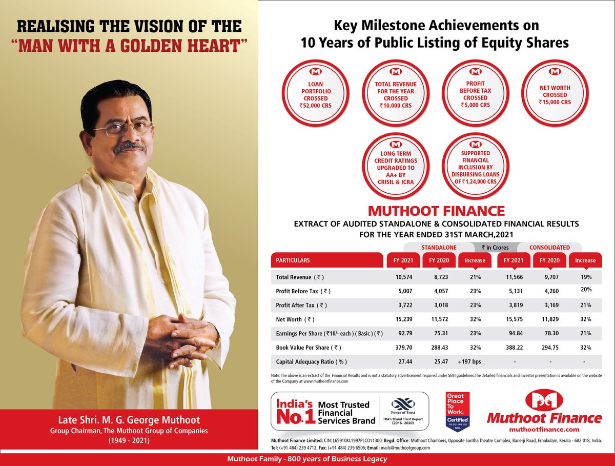 Mg george muthoot, who ran muthoot finance, india's leading lender against gold, with his three brothers, passed away in march 2021 at age 71.